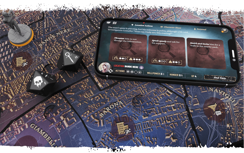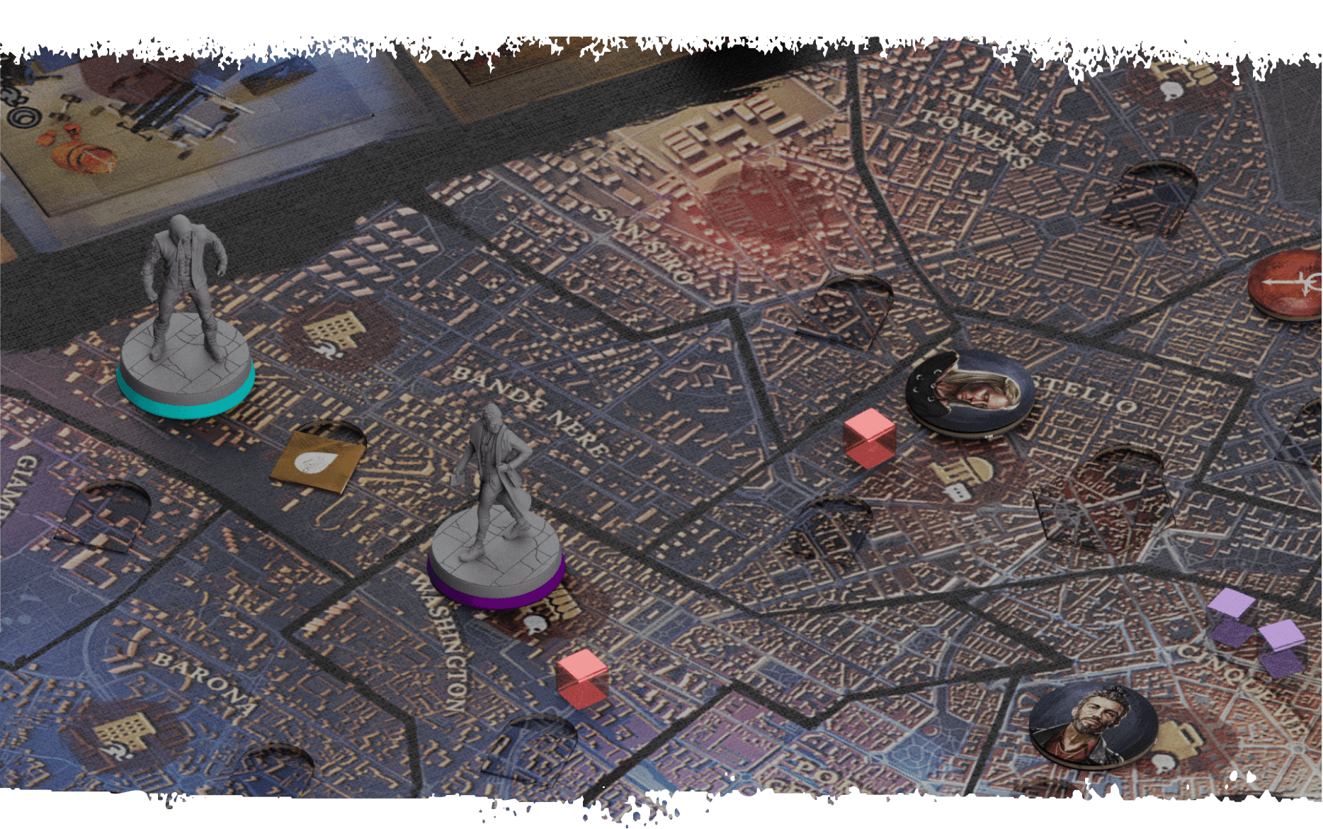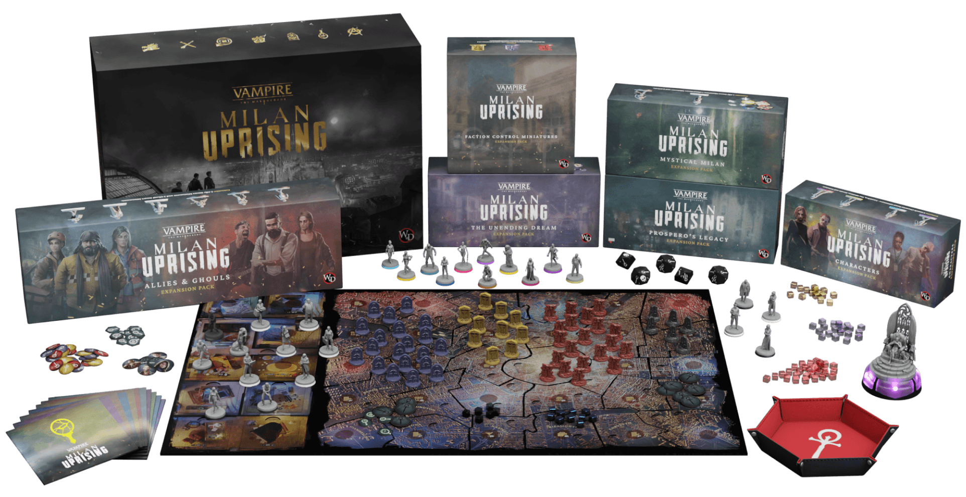 Vampire: The Masquerade - Milan Uprising is a new and original boardgame experience set in the World of Darkness, only available on the Teburu System. Shape the fate of the city of Milan as the Anarchs in this narrative driven cooperative boardgame featuring roleplay elements, personal goals, and hidden information.